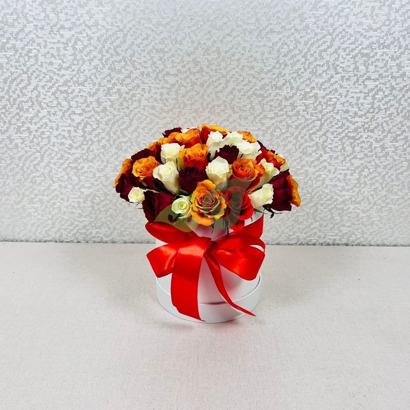 Состав и характеристики композиции 51 роза микс Кения в коробке: